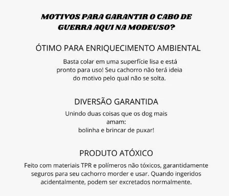Disponível em cores vibrantes, o Cabo de Guerra garante momentos de diversão prolongados, promovendo tanto o bem-estar físico quanto mental do seu pet.